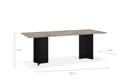 Contemporary Ann outdoor dining table with sleek black steel frame and matching armchairs, styled in a minimalist Scandinavian patio with gravel ground and natural surroundings. Contemporary Ann outdoor dining table with sleek black steel frame and matching armchairs, styled in a minimalist Scandinavian patio with gravel ground and natural surroundings.