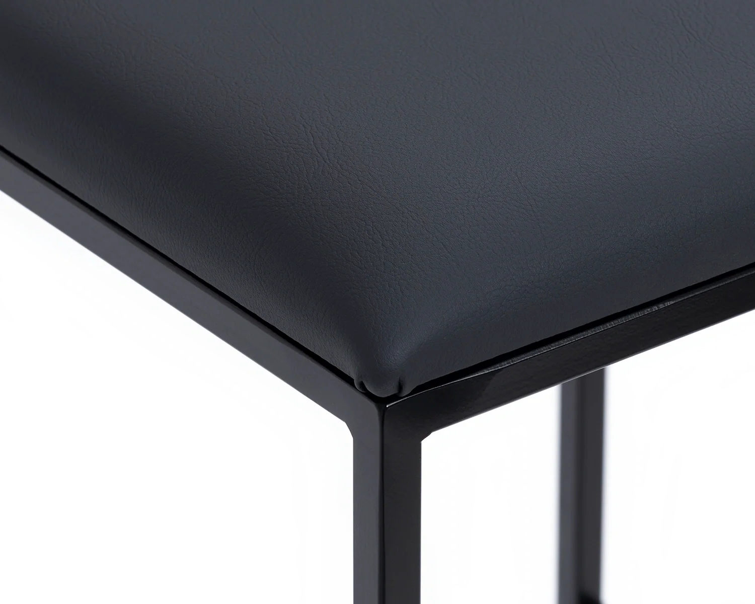 Two By Crea Svea all-black bar stools with sleek metal frames and dark seats, positioned at a white marble kitchen island, with light wooden cabinetry and a marble backsplash in the background. Ideal for modern minimalist kitchen designs and contemporary furniture. Two By Crea Svea all-black bar stools with sleek metal frames and dark seats, positioned at a white marble kitchen island, with light wooden cabinetry and a marble backsplash in the background. Ideal for modern minimalist kitchen designs and contemporary furniture.